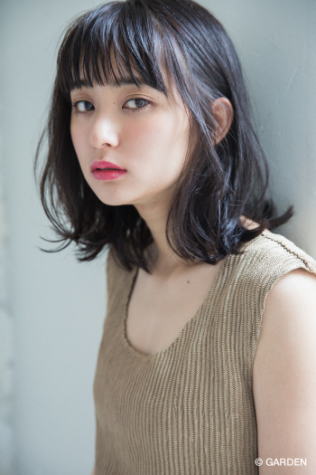 Joemi くせ毛風パーマでお洒落ミディアムボブ 黒髪が素敵 ダークブラウン ダークアッシュ 切りっぱなし レザーカット くせ毛風ボブ Garden Hair Catalog 原宿 表参道 銀座 美容室 ヘアサロン ガーデン